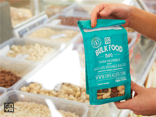 Hinweis: Der Zweck der wiederverwendbaren Taschen von Onya ist es, den Lebensmitteleinkauf zu erleichtern. Die Taschen sind als Leichtgewicht konzipiert, um das Tragen von Töpfen und Kartons beim Einkaufen zu ersetzen. Onya empfiehlt, den Inhalt (nach dem Einkauf) in Vorratstöpfe und -behälter zu entleeren.