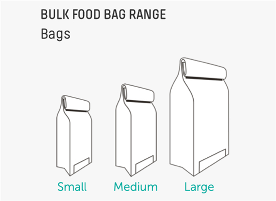 Die Volumina von Bulk Food Bags variieren je nachdem, was Sie in sie hineinpacken. Eine kleine Tüte Mehl wiegt zum Beispiel mehr als eine kleine Tüte Mais-Chips, aber um eine grobe Vorstellung zu geben, sind die Tüten an die klassischen 1kg, 2kg oder 5kg angelehnt.