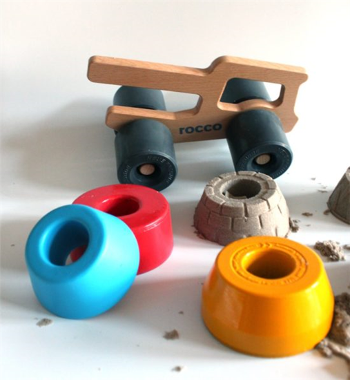 Mit diesem runden Wagen können Kinder nicht nur stundenlangen Spaß haben, er hat auch vier Skateboard-Räder und besteht aus drei abnehmbaren Formen. Diese können als Blockspiel und als Sandformen verwendet werden.