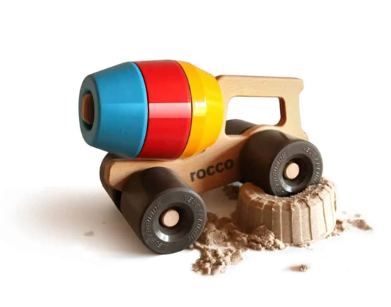 ROCCO ist der Bruder von BRONCO und unser neuer Betonmischer für Kleinkinder ab 1 Jahr. Rocco bietet viele Möglichkeiten für die kognitive und motorische Entwicklung des Kindes. Man kann ROCCO nicht einfach rollen und schieben. Die bunten Ringe bilden den Tank des Betonmischers. Sie können sortiert, gestapelt, geklebt, gedreht, gefüllt, verschlossen und natürlich auch als Sandformen verwendet werden.