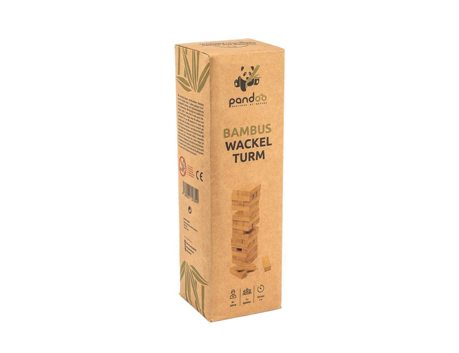 Die Bausteine sind aus Bambus: dem am schnellsten wachsenden Material der Erde! Die Verpackung besteht aus Papier und kann daher recycelt werden.