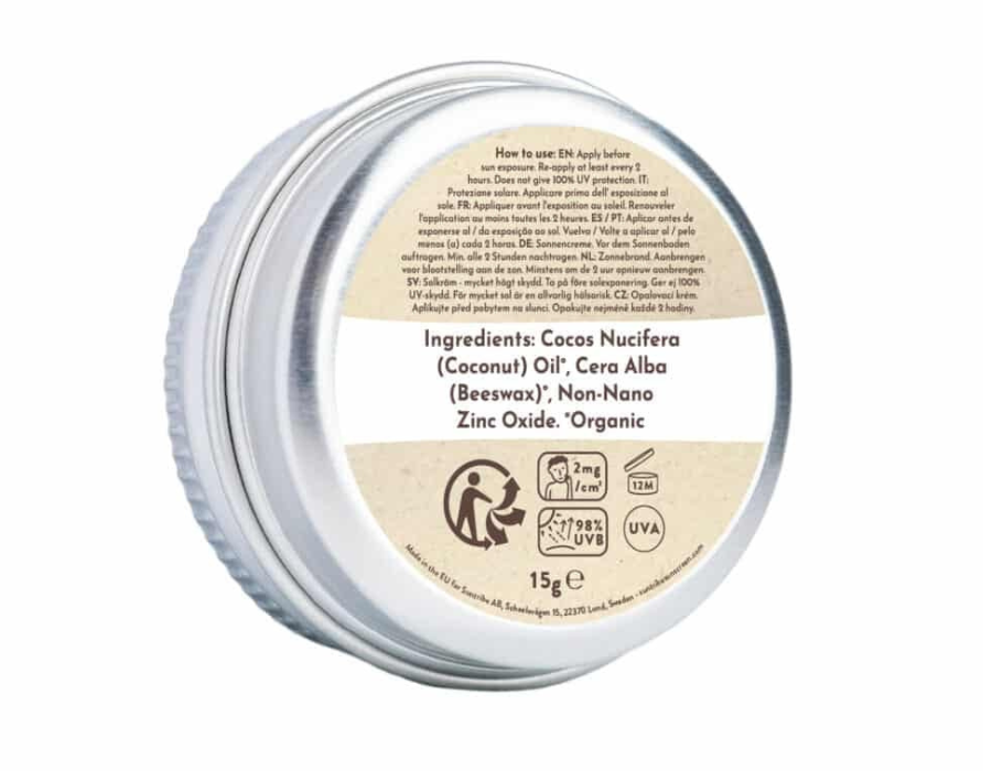 Dieser Sonnenschutzstift bietet wirksamen Sonnenschutz beim Sport. Bleibt gut haften, sowohl im Wasser als auch beim Sport und Schwitzen. Die Sonnencreme von Suntribe besteht aus nano-freiem Zinkoxid und ist völlig frei von (Mikro-)Plastik. Dieses mineralische Sonnenschutzmittel mit LSF 50 bietet Schutz vor UVA- und UVB-Strahlung.