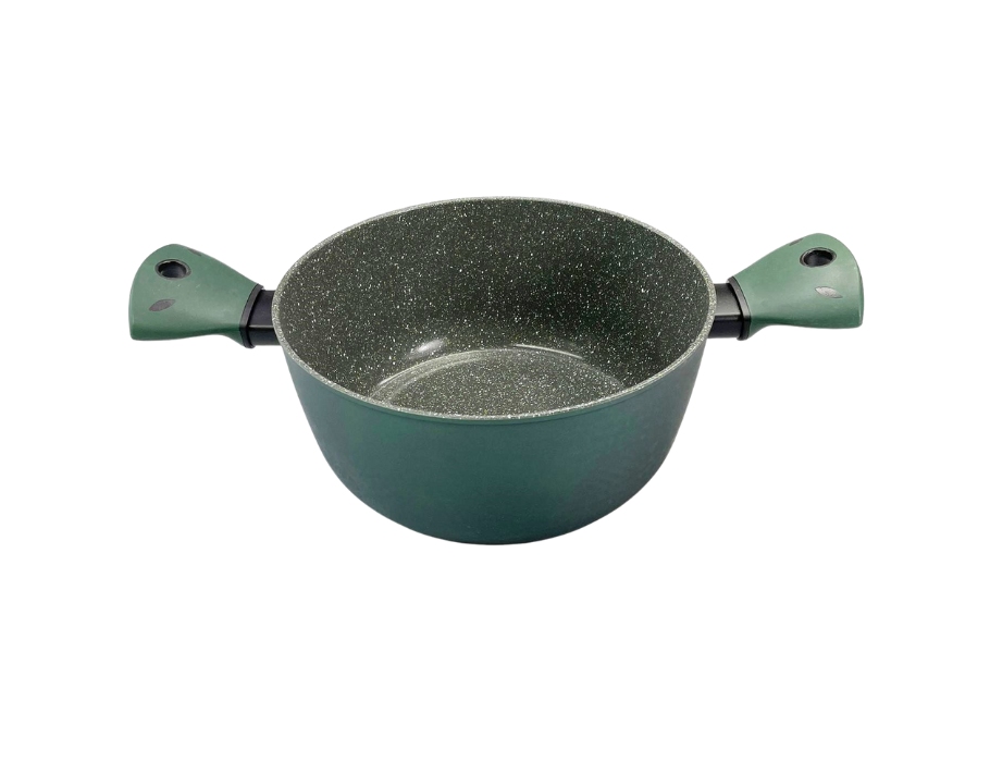 Die Schmorpfanne ECO-OK mit 2 Griffen ist ein unentbehrlicher Helfer in der Küche! Sie eignet sich sowohl zum Schmoren als auch zum längeren Kochen am Stück. Wie ein Schmorkochtopf - man braucht keinen Bräter mehr. Dank ihrer Antihaftbeschichtung ist sie fleckenresistent und hitzebeständig.