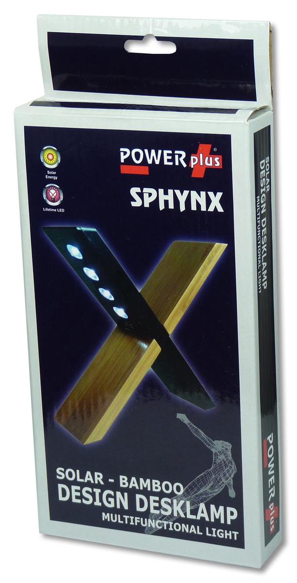 Die Powerplus Sphynx ist eine Design-Tischleuchte und multifunktionale Schreibtischlampe mit Solarbetrieb. Die Kombination aus Solarpanel und LED-Lampen macht die Sphynx unabhängig und immer hell. Für die Konstruktion der Leuchte wurde Bambusholz gewählt, um den ökologischen Aspekt zu unterstreichen.