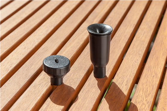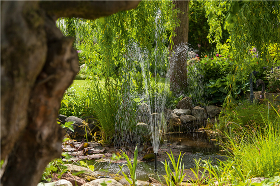 Der elektronische Antrieb sorgt für Langlebigkeit und Zuverlässigkeit. Der Wasserdurchfluss ist über einen Drehregler einstellbar. Die Pumpe lässt sich leicht zur Reinigung zerlegen. Zusätzlich kann ein Schlauch an der Oberseite angeschlossen werden, um kleinere Wasserspeier oder Brunnen zu betreiben.