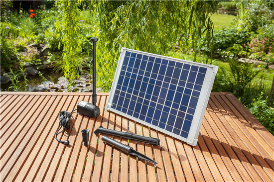 Das Solar-Teichpumpen-Set Water Splash von esotec ist ideal für größere Gartenteiche (3–5 Kubikmeter). Mit 20 Watt Leistung und einer Fördermenge von 1350 l/h bietet es vielseitige Wasserspiele dank verschiedener Sprinklerdüsen. Der Aufbau ist kinderleicht: einfach die Pumpe mit dem Solarmodul verbinden und auf die nächsten Sonnenstrahlen warten. Schon beginnt die Pumpe, Wasser zu fördern und Ihren Garten zu verschönern.