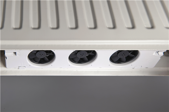 Sie platzieren den Kühlerlüfter zwischen den beiden Platten an der Unterseite des Kühlers. Die Magnete halten den Lüfter an Ort und Stelle. Anschließend schließen Sie den Lüfter an. Sobald der Heizkörper 35 Grad oder wärmer ist, schaltet sich der Lüfter ein und verteilt die Luft. Bei Temperaturen unter 25 Grad schaltet der Lüfter wieder ab. Der Ventilator läuft daher nie, wenn der Raum nicht beheizt ist.